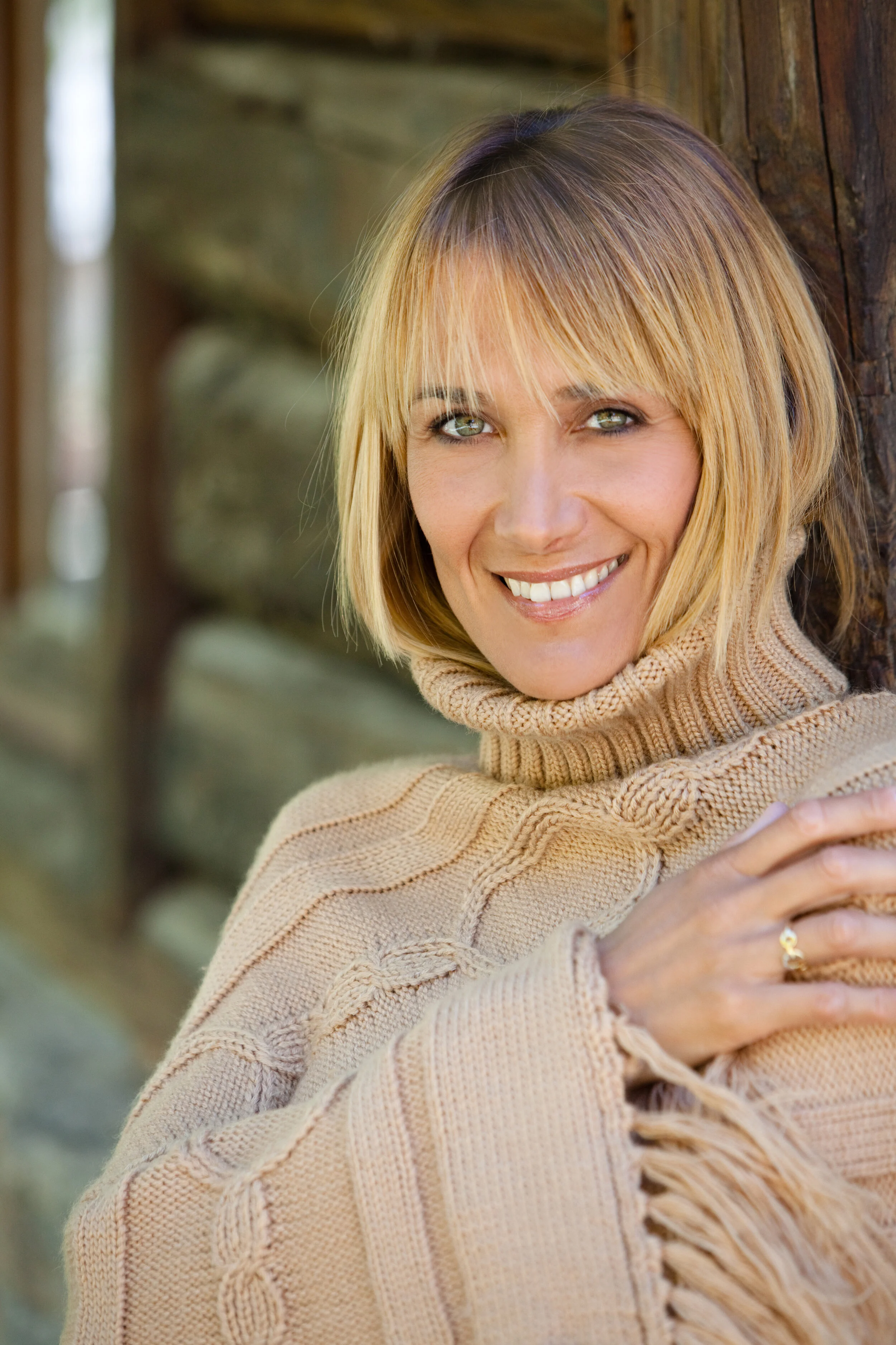 With the same woman in the right face-framing hair color we feel more comfortable and drawn in by her. She looks younger and softer without the blonde—but strong.